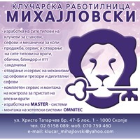 | Кратко инфо | ИЗРАБОТКА НА КЛУЧЕВИ, СЕРВИС ЗА ВРАТИ И СЕФОВИ; ИЗРАБОТКА НА MASTER - СИСТЕМИ; МОНТАЖА НА ХОТЕЛСКИ СИСТЕМИ OMNITEC |